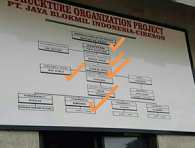 Berdasarkan informasi dari sumber terpercaya di internal PT. JBI, dua orang yang diamankan itu bernama Zowen dan Xu Kali, keduanya berasal dari China yang bekerja sebagai tenaga ahli mesin. Salah satu pekerja (Xu Kali) bahkan sempat mencoba kabur saat Tim Imigrasi yang didampingi petugas dari Polri dan TNI tiba di lokasi.
