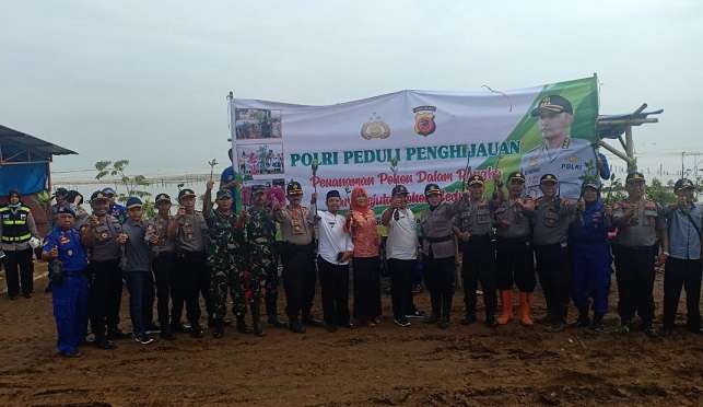 CIREBON – Peringati Hari Pohon Sedunia, Polresta Cirebon gelar apel penanaman 10.000 pohon, di sekitar pinggir Pantai Baro Gebang, Desa Gebang Mekar Kec. Gebang Kab. Cirebon, Jumat (10/1/2020).