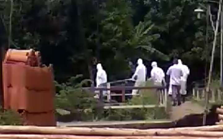 Terkait petugas RS yang membawa jenazah tersebut, Ia mengungkapkan bahwa keempat petugas sudah memakai APD lengkap. “Yang kontak ya 4 orang itu,” singkatnya. Terkait adanya warga tanpa APD yang terlihat dalam video bersama petugas, Ia menduga bahwa video itu diambil pasca pemakaman. “Mungkin yang dibelakang berani mendekat, tanpa APD karena tandu sudah kosong. Mungkin,” tambahnya.