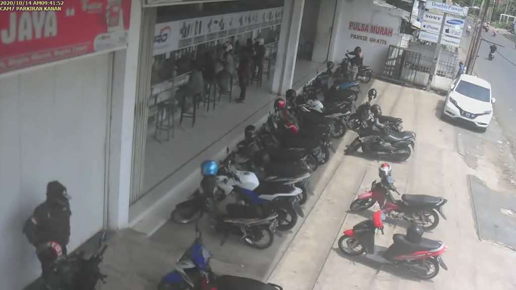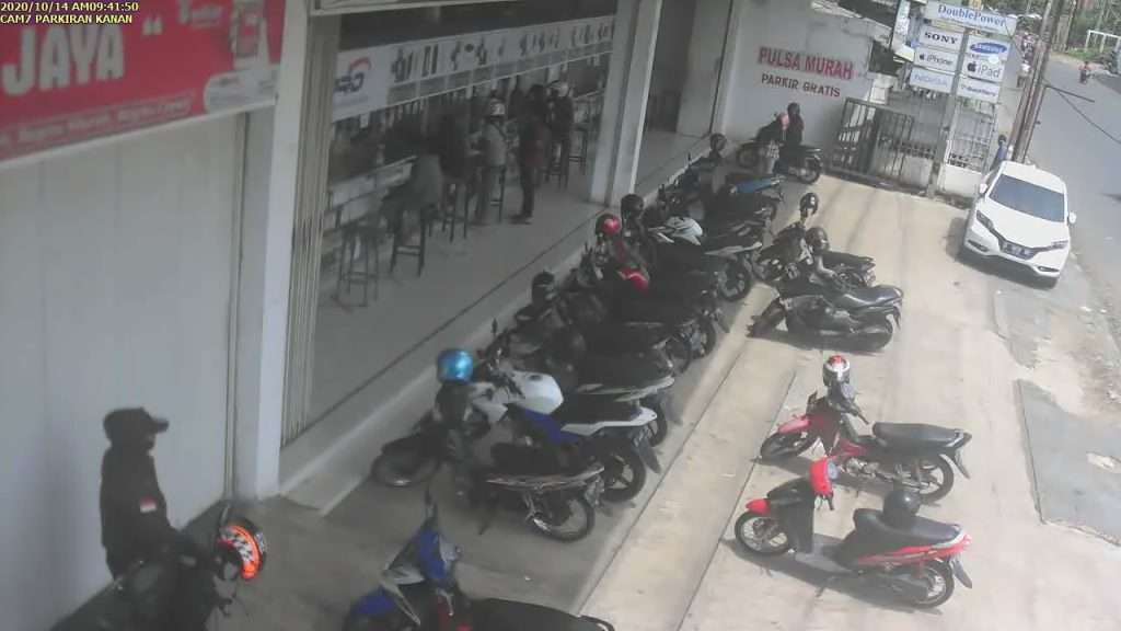 KOTA CIREBON – Bagi anda yang tengah membeli perlengkapan atau aksesoris handphone di Toko Libra Jaya Sparepart, Jalan Rajawali Raya, Kota Cirebon, harus berhati-ati dan ekstra waspada. Pasalnya, kerap ada maling yang memantau pergerakan anda di sana. Bagaimana tidak, baru saja ditinggal beberapa menit, helm Merk KYT warna oranye milik seorang pembeli langsung raib digondol maling, Rabu (14/10/2020) pukul 09:41 WIB.
