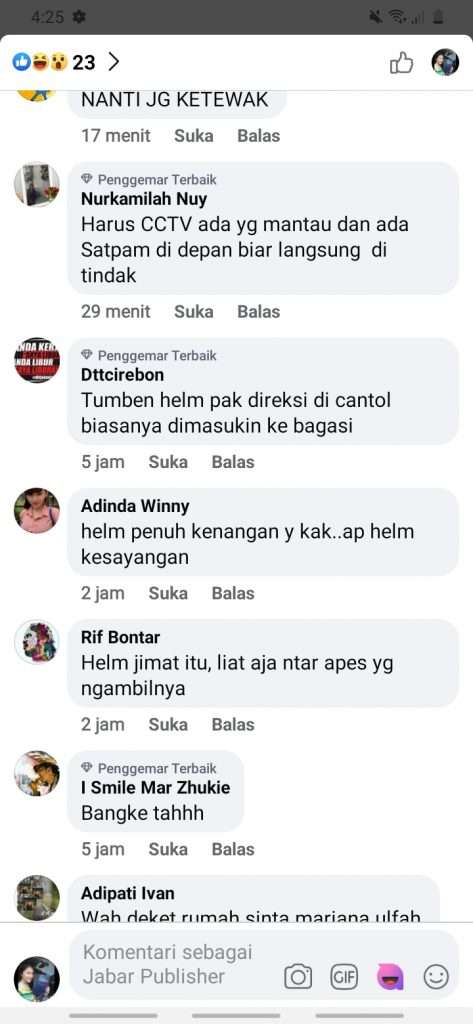 “Yang saya sayangkan, parkirannya tidak dijaga, padahal kan pembelinya cukup ramai dan sudah sering kejadian helm dicuri. Selain itu tidak ada semacam peringatan kewaspadaan, misal: memasang tulisan awas rawan maling, atau jaga barang anda sendiri karena rawan pencurian. Atau pasang peringatan bernada kewaspadaan lainnya. Semoga ini menjadi perhatian bagi pemilik toko agar bisa menempatkan penjaga di sana dan melakukan upaya perbaikan pelayanan demi kenyamanan para pembeli. Kalau helmnya sih saya ikhlas-ikhlas saja. Dan semoga bisa bermanfaat untuk si pelaku,” ujar korban.