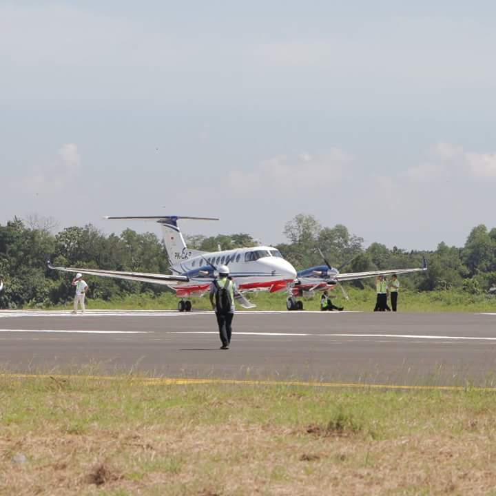 Pesawat kalibrasi tersebut merupakan pesawat jenis Beechcraft King Air B350- i milik Kementerian Perhubungan (Kemenhub) yang “memperawani” bandara di Majalengka tersebut. Pesawat dengan kapasitas enam penumpang ini lepas landas dari Bandara Husein Sastranegara Bandung, Kamis (29/3/2018) pukul 08.55 WIB dan mendarat dengan mulus pukul 09.15 WIB di Runway Bandara Kertajati, Majalengka. Penerbangan Bandung Majalengka ditempuh dengan waku 20 menit. Cuaca cerah mewarnai penerbangan tersebut.