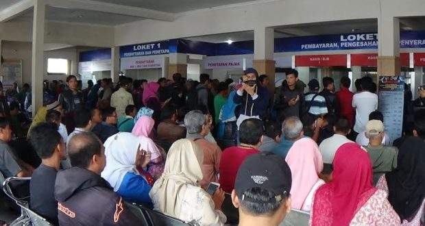 TASIK – Satu Hari Jelang Kenaikan Tarif Dokumen Kendaraan, Samsat Kota Tasikmalaya, Jawa Barat Diserbu Ribuan Pelanggan. Meski Harus Antri Lama, Mereka Memilih Mengurus Perpanjangan STNK Hingga Mutasi Kendaraan Hari Ini Karena Belum Naik.