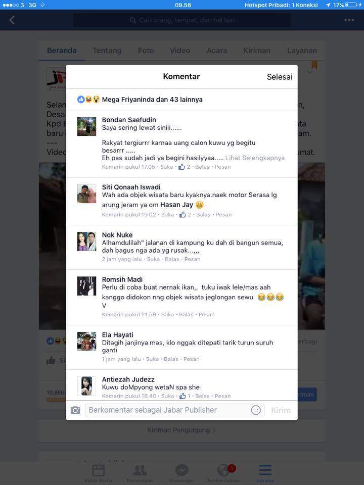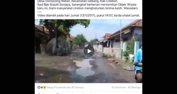 Kekesalan warga berujung pada diuploadnya sebuah video yang berjudul “Objek Wisata Jeglugan Sewu” di facebook, Jumat (13/1/2017). Video berdurasi 1 menit 55 detik ini, menjelaskan potongan kecil kerusakan jalan di desa tersebut. Luar biasa, dalam waktu 12 jam video itu menjadi viral. Sedikitnya ada 10 ribu pasang mata yang menonton video tersebut. Ratusan orang membagikan juga mengomentarinya.