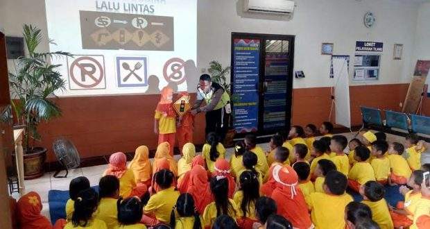 BEKASI – Sat Lantas Polres Metro Bekasi mendapat kunjungan siswa-siswi TK Islam Al Manshuriyah dalam kegiatan Polisi sahabat anak dari TK Kecamatan Tambun Selatan , Kabupaten Bekasi yang bertempat di ruang aula Sat Lantas Polres Metro Bekasi dan Taman Lalu lintas, Jumat (27/01) pagi sekitar pukul 10.00 WIB.