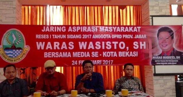 BEKASI – Dalam kegiatan jaring aspirasi masyarakat atau biasa disebut reses yang dilakukan oleh Ketua Fraksi PDIP DPRD Provinsi Jawa Barat, Waras Wasisto, dengan media se-Kota Bekasi, di salah satu rumah makan di Kota Bekasi, Jumat, (24/2). Banyak pertanyaan yang dilontarkan awak media terhadap Waras mengenai partainya yang ‘tumbang’ saat Pemilihan Kepala Daerah (Pilkada) serentak di Kabupaten Bekasi (15/2) lalu. Terlebih, akibat gagalnya partai bermoncong putih itu dalam Pilkada serentak di Kabupaten Bekasi, menyebabkan kekecewaan terhadap 23 Pimpinan Anak Cabang (PAC), dan ingin ‘melengserkan’ Ketua Dewan Pimpinan Cabang (DPC) PDIP Kabupaten Bekasi yang di nahkodai Meilina Kartika Kadir, atau yang akrab disapa Melly.