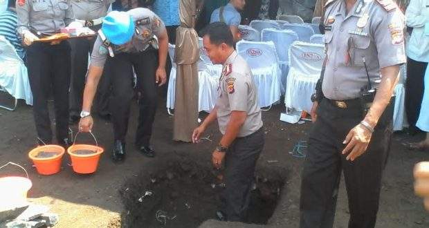 TASIK – Demi memberikan pelayanan terhadap masyarakat, Kapolres Tasik Kota AKBP Arif Fajarudin Sik bersama Kapolsek Jajaran Polres Tasik Kota, melaksanakan peletakan batu pertama sebagai awal dimulainya pembangunan Mako Polsek Mangkubumi yang bertempat di wilayah Kec Mangkubumi, Kamis (27/4/2017) pukul 10.30 WIB.