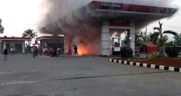 BEKASI – Stasiun Pengisian Bahan Bakar Umum (SPBU) Blokang yang berada di Jalan Raya Sukatani RT 01/01 Desa Karang Sentosa, Kecamatan Karang Bahagia, Kabupaten Bekasi, terbakar, Senin (08/05) kemarin pagi sekitar pukul 05.30 WIB. SPBU tersebut terbakar diduga akibat adanya pelanggan yang menyalakan mesin saat tengah mengisi Bahan Bakar Minyak (BBM).