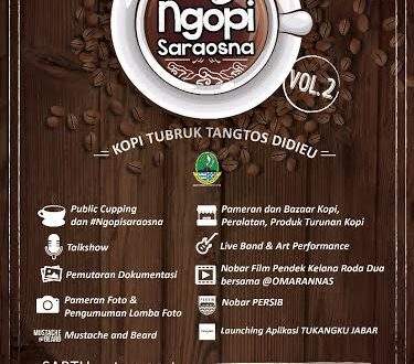 BANDUNG – Animo tinggi masyarakat umum dan pecinta kopi khususnya pada gelaran Ngopi Saraosna Vo. 1 membuat Pemerintah Provinsi Jawa Barat kembali menggelar sekuelnya bertajuk Ngopi Saraosna Vol. 2, Sabtu (13/5/17) sore.
