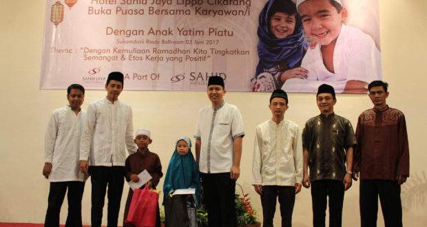 BEKASI – Hotel Sahid Jaya Lippo (HSJL) Cikarang berbagi kepeduliaan antar sesama, khususnya bagi anak yatim piatu dan kaum dhuafa. Dengan mengambil tema yang bertajuk ‘Dengan Kemuliaan Ramadhan Kita Tingkatkan Semagat & Etos Kerja yang Positif’, Sahid Jaya Lippo Cikarang memberi santunan kepada beberapa pesantren lebih kurang ada 100 anak yatim piatu untuk masing-masing pesantren di daerah Cikarang. Kegiatan ini dilaksanakan di Sukamdani Riady Ballroom Hotel Sahid Jaya Lippo Cikarang, Sabtu (03/06) sore.
