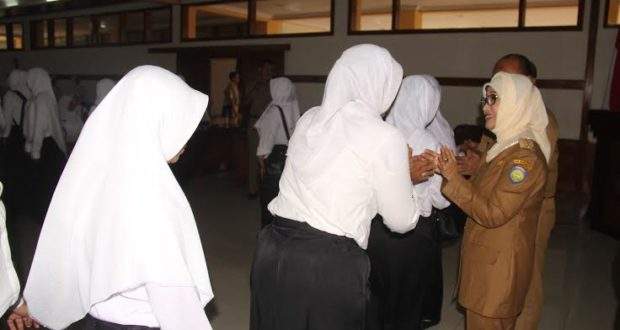 INDRAMAYU – Sebanyak 91 Bidan PTT akhirnya menerima Surat Keputusan Calon Pegawai Negeri Sipil (SK CPNS) di lingkungan Pemerintah Kabupaten Indramayu. Penyerahan diserahkan langsung Bupati Indramayu Hj. Anna Sophanah di Ruang Ki Tinggil Setda Indramayu, Selasa (11/07/2017).