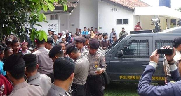 Sejumlah aparat Kepolisian dari Polres Tasikmalaya Kota yang melakukan pengamanan harus berjibaku dengan keluarga korban dan warga. Sidang dilaksanakan di Pengadilan Negeri Kelas 1a Kota Tasik secara tetutup di ruangan sidang anak, Senin (24/07).