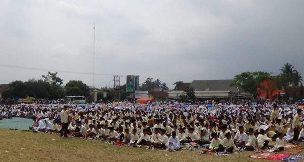 TASIK – Ribuan umat muslim di Tasik gelar doa bersama di alun-alun manonjaya, mereka juga menggelar sholat gaib ditengah terik panas matahari. Akibat waktu doa bersama diundur, ribuan peserta perempuan serta pelajar yang sudah menunggu sejak pagi membubarkan diri, Jumat (8/9/2017).