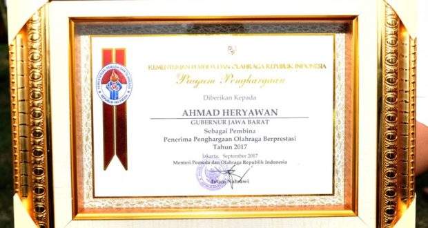 MAGELANG – Pada perayaan Hari Olahraga Nasional (Haornas) ke XXXIV Tahun 2017, Gubernur Jawa Barat Ahmad Heryawan (Aher) mendapat penghargaan sebagai Pembina Olahraga Daerah Berprestasi Tahun 2017.