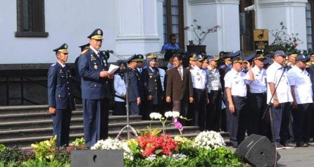 BANDUNG – Wakil Gubernur Jawa Barat Deddy Mizwar memimpin Upacara Bendera Memperingati Hari Perhubungan Nasional (HARHUBNAS) Tingkat Provinsi Jawa Barat, di Halaman Gedung Sate Bandung, Senin (18/09/2017).