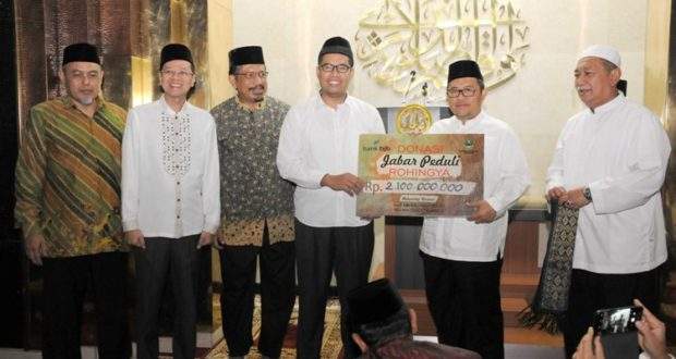 BANDUNG – Pemerintah Provinsi Jawa Barat menyerahkan dana bantuan kemanusiaan bagi Rohingya sebesar Rp 2,1 Miliar, yang terkumpul sejak 4-17 September 2017 melalui Gerakan Jabar Peduli Rohingya. Donasi yang terkumpul berasal dari Aparatur Sipil Negara (ASN) di lingkungan Pemprov Jawa Barat, karyawan Bank bjb, dan masyarakat umum yang dikumpulkan melalui nomer rekening bjb.