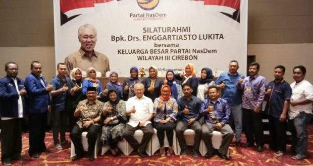 CIREBON – Dalam rangka memperkuat tali silaturrahmi antar pengurus partai di daerah dengan pusat, juga sekaligus dalam rangka menguatkan mesin partai jelang Pilkada serentak 2018 mendatang, DPP Partai NasDem melakukan konsolidasi dengan ketua DPD se-Wilayah III Cirebon di salah satu hotel di wilayah Kota Cirebon, Rabu (20/9/2017).