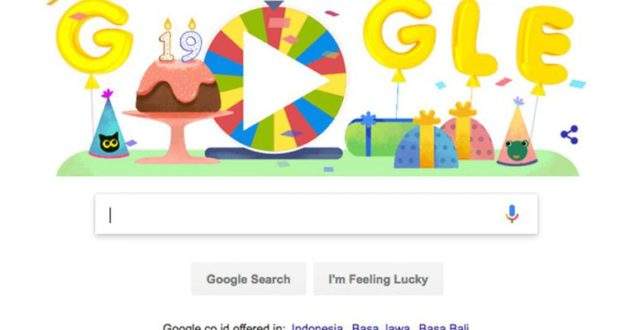 Hari ini, Rabu, 27 September, Google merayakan ulang tahunnya yang ke-19. Sebuah doodle istimewa bertajuk “Pemutar Kejutan Ulang Tahun Google” pun disiapkan di laman beranda sang raksasa mesin pencari tersebut.