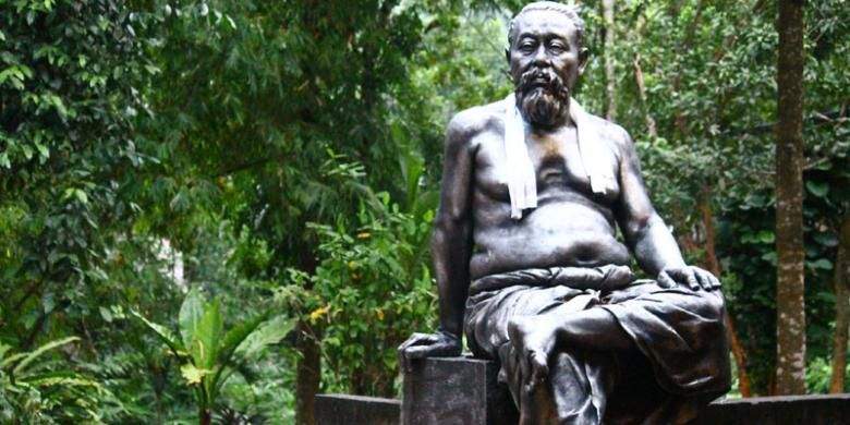 Patung seniman multitalenta pendiri padepokan seni yaitu Bagong Kussudiarja berada di tengah komplek Padepokan Seni Bagong Kussudiarja di Bantul, Yogyakarta.