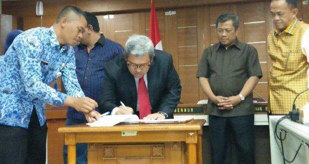 Penandatanganan dilakukan dalam Rapat Kerja Badan Anggaran DPRD Jabar bersama Pemprov Jawa Barat di Ruang Badan Anggaran di Gedung DPRD Jabar, Jl. Diponegoro No. 27, Kota Bandung, Selasa pagi (17/10/17).