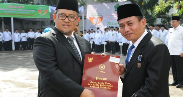 Pada kesempatan ini, mewakili Presiden RI, Aher menyerahkan Tanda Kehormatan Satya Lancana Karya Satya yang dianugerahkan kepada 250 pegawai Kantor Wilayah Kementerian Agama yang tersebar ke seluruh kabupaten/kota di Jawa Barat. Secara simbolis, Aher memberikan penganugerahan kepada 10 (sepuluh) orang pegawai yang telah megabdi 30 tahun, 8 (delapan) orang pengabdi 20 tahun, dan 6 (enam) orang pengabdi 10 tahun. Penganugerahan ini berdasarkan Keputusan Presiden Republik Indonesia Nomor: 117/TK/Tahun 2017 dan seterusnya yang ditetapkan di Jakarta, 24 November 2017. (rls/hms)