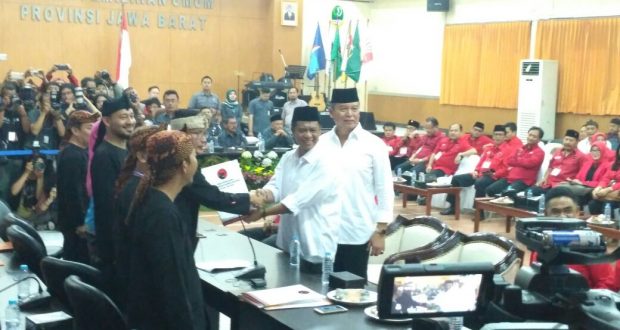 BANDUNG – Proses Pendaftaran Bakal Pasangan Calon (Bapaslon) pada Pilgub Jabar 2018 sudah berakhir tepat hari ini, Rabu (10/1/2018) sesuai jadwal yang diberikan oleh KPU. Pada hari pendaftaran terakhir, dua Paslon tersisa yakni, Sudrajat-Ahmad Saikhu dan Paslon TB Hassanudin-Anton Charliyan memenuhi proses pendaftaran mendatangi KPU Jabar.