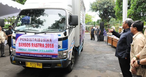 BANDUNG – Gubernur Jawa Barat Ahmad Heryawan (Aher) melepas empat truk pendistribusi program Bantuan Sosial Beras Sejahtera (Bansos Rastra) 2018 Tingkat Provinsi Jawa Barat. Peluncuran yang dilakukan Aher di area Parkir Barat Gedung Sate, Jl. Diponegoro Kota Bandung, Senin (22/1/18) ini, merupakan pendistribusian tahap pertama pada tahun ini.