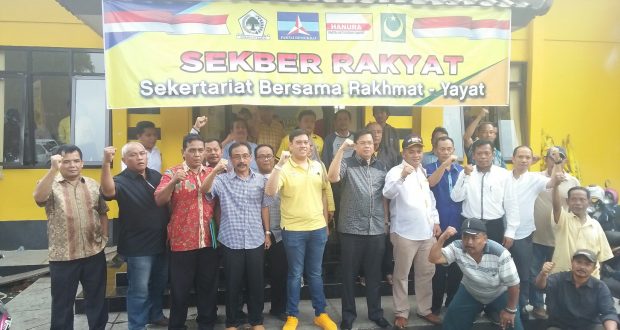 CIREBON – Dewan Pengurus Daerah (DPD) Kabupaten Cirebon, usai meresmikan sekretariat bersama (sekber) partai pengusung bakal calon bupati dan wakil bupati Cirebon, H Rakhmat SE dan Drs H Yayat Ruhyat.