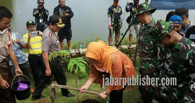 BEKASI – Bupati Bekasi, Neneng Hasanah Yasin didampingi Kadis Lingkungan Hidup Daryanto, Kadis Pariwisata Sutia Resmulyawan, dan Camat Bojongmangu Agung Suganda menghadiri kegiatan Penanaman Sejuta Pohon Sukun yang diprakarsai oleh Kodim 0509/Kabupaten Bekasi bersama Pemkab Bekasi dan Pengelola Kawasan Industri dalam rangka mewujudkan Kabupaten Bekasi yang Asri dan Bebas Polusi/Go Green.