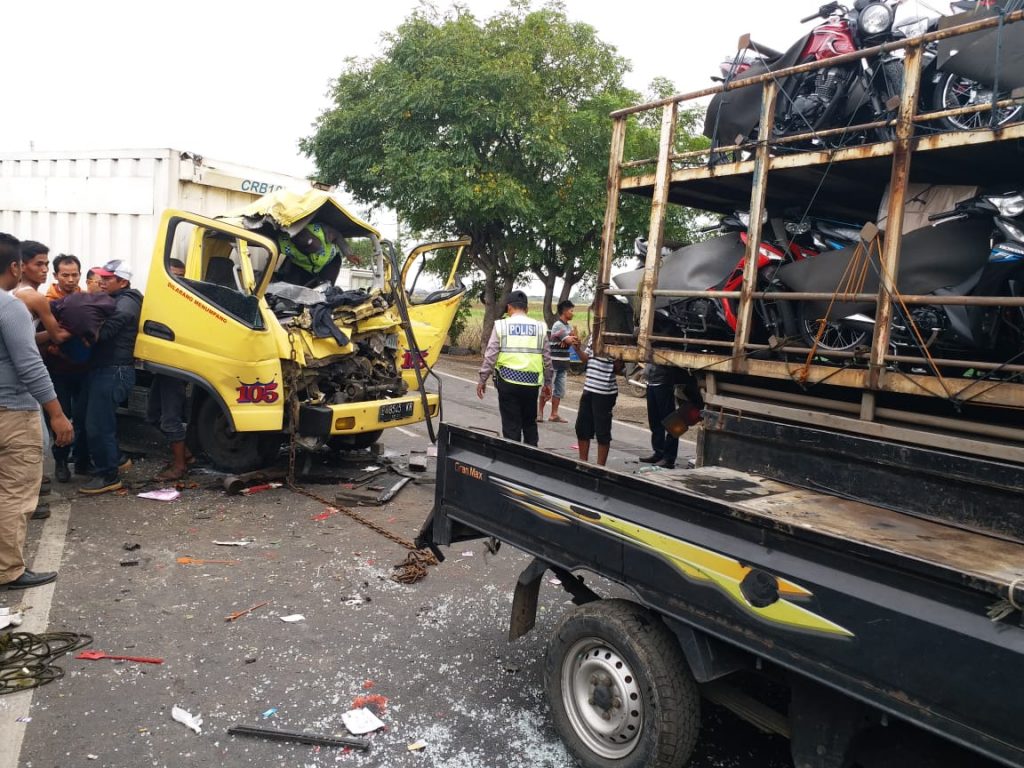 Selanjutnya, kata dia, pengemudi Truck full box nopol L-8967-UX menabrak bagian belakang kendaraan. Truck box nopol E-8545-KR yang melaju searah didepannya menabrak truck ransus fuso nopol B-9213-WS. Sehingga truck fuso terdorong kedepan lalu menabrak kendaraan. Truck trailer nopol H-1907-AS yang sedang berhenti dibahu jalan. Akibatnya, pengemudi tuck box nopol E-8545-KR, Iskandar (38), Warga Jagasatru, Kota Cirebon meninggal dunia di TKP.