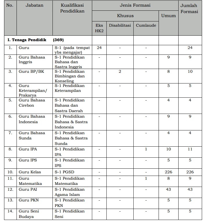 Dikatakan Sunjaya, penetapan formasi akhir kebutuhan pegawai aparatur sipil negara di lingkungan Kabupaten Cirebon Tahun anggaran 2018, berdasarkan keputusan Menteri Pendayagunaan Aparatur Negara dan Reformasi Birokrasi (MENPAN-RB) Nomor : 282 Tahun 2018 tentang kebutuhan pegawai aparatur sipil negara di lingkungan Kabupaten Cirebon tahun anggaran 2018, sebanyak 475 formasi dan 49 Jabatan.