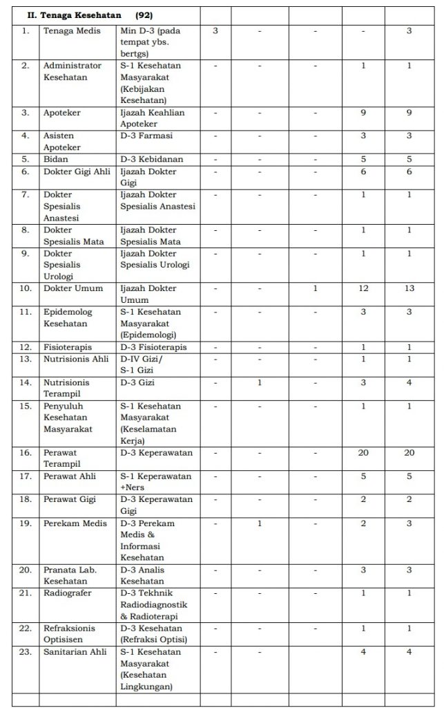 “Formasi tersebut di atas untuk mengisi sebagian kekosongan PNS tenaga