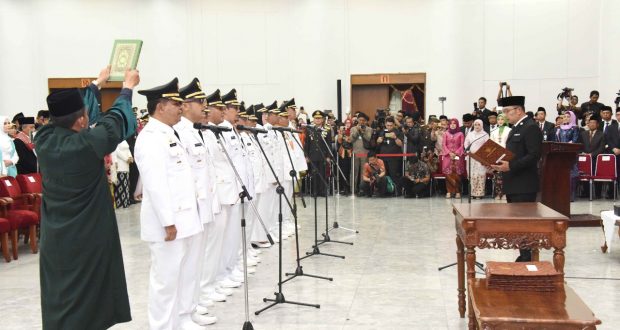 Gubernur Ridwan Kamil atas nama Presiden Republik Indonesia secara resmi melantik enam Bupati/Wakil Bupati dan Walikota/Wakil Walikota hasil Pilkada Serentak 2018. Ini merupakan pelantikan tahap pertama dari empat tahapan pelantikan yang dijadwalkan.