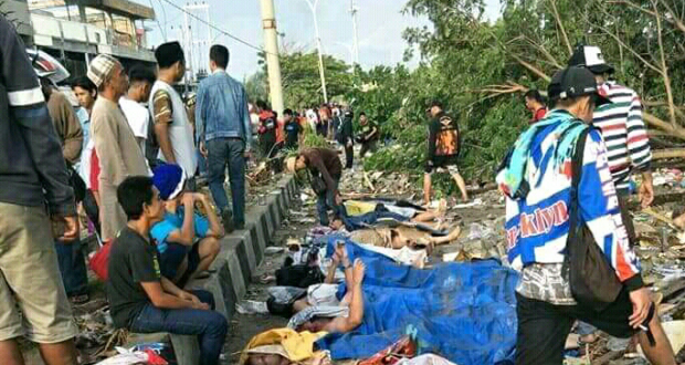 PALU – Kehancuran tampak di berbagai pelosok Kota Palu. Mayat bergelimpangan di mana-mana, bangunan-bangunan hancur, puing-puing bertebaran, situasi begitu sunyi dan mencekam.
