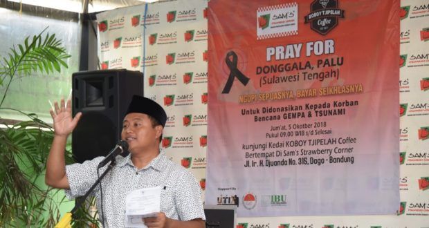 BANDUNG – Wakil Gubernur Jawa Barat, Uu Ruzhanul Ulum, mengapresiasi kegiatan Charity Pray For Donggala Palu Sulawesi Tengah sekaligus Acara “Ngopi Sepuasnya, Bayar Seikhlasnya untuk didonasikan kepada Korban Bencana Gempa & Tsunami” di Sam’s Strawberry Corner Jl.Ir.H.Djuanda No.315 Bandung, Jumat (5/10/18).