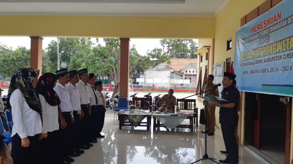 CIREBON – Tujuh Anggota Badan Permusyawaratan Desa (BPD) Desa Dompyong Wetan, Kecamatan Gebang, Kabupaten Cirebon masa jabatan 2018 – 2024 resmi dilantik, Selasa (11/12/2018). Pelantikan tersebut digelar di Kantor Balai Desa Dompyong Wetan dengan dihadiri pula unsur Muspika Kecamatan Gebang.