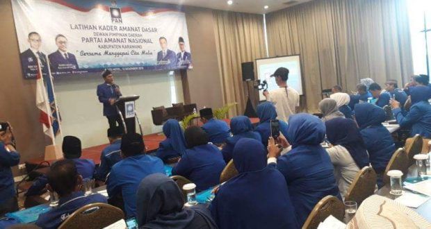 Demikian ditegaskan Bambang Maryono, Ketua DPD PAN Karawang, pada acara pembukaan Latihan Kader Amanat Dasar (LKAD), Rabu (12/12/2018) di Hotel Brits. Bambang menargetkan, kepada seluruh kadernya, dalam Pemilu 2019 nanti, untuk bisa meraih suara partai yang mampu meraih 6 kursi di legislatif Karawang.