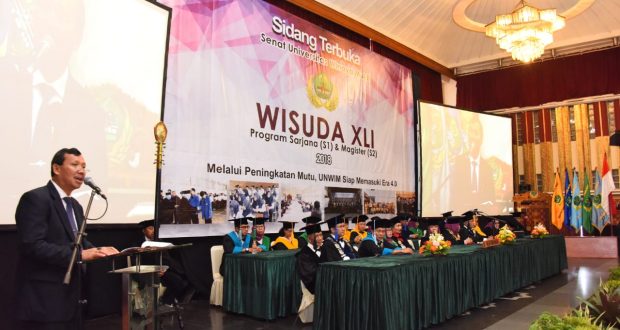 BANDUNG – Sebanyak 540 wisudawan dan wisudawati Universitas Winaya Mukti (UNWIM) resmi menyandang gelar sarjana dan magister, di Bale Asri Pusdai Bandung, Kamis (20/12/2018). Sekretaris Daerah (Sekda) Provinsi Jawa Barat Iwa Karniwa yang hadir mewakili Gubernur berpesan agar para lulusan dapat berkontribusi pada revolusi industri 4.0.