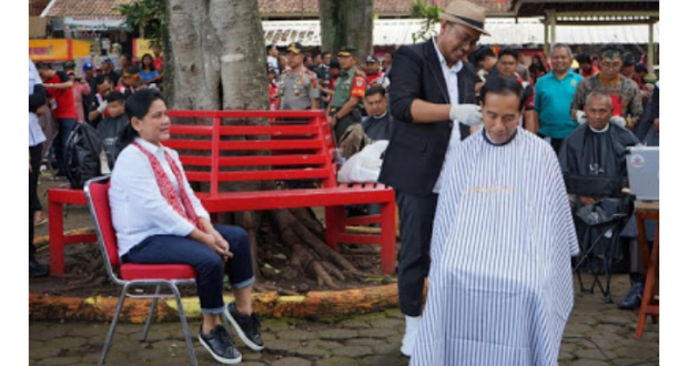 GARUT – Usai menemui petani di Desa Leuwigoong, Presiden Joko Widodo (Jokowi) berpindah lokasi ke Danau Situbagendit, Garut, Jawa Barat. Jokowi ditemani Ibu Negara Iriana memotong rambut oleh pencukur asli dari Garut, alias ‘Asgar’.