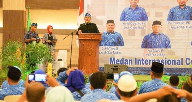 MEDAN – Gubernur Jawa Barat Ridwan Kamil menyaksikan langsung pelantikan 10 Pengurus Cabang Paguyuban Pasundan se-wilayah Sumatera Utara, di aula Medan International Convention Center (MICC) Kota Medan, Minggu (3/3/19).