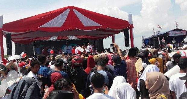 CIREBON – Ribuan warga serta relawan dan simpatisan partai koalisi pendukung pasangan calon presiden wakil presiden nomor urut 01, Jokowi – Ma’ruf Amin menyemut di Pantai Baro, Desa Gebang Mekar, Kec Gebang, Kan Cirebon sejak Jumat (5/4/2019) pagi.