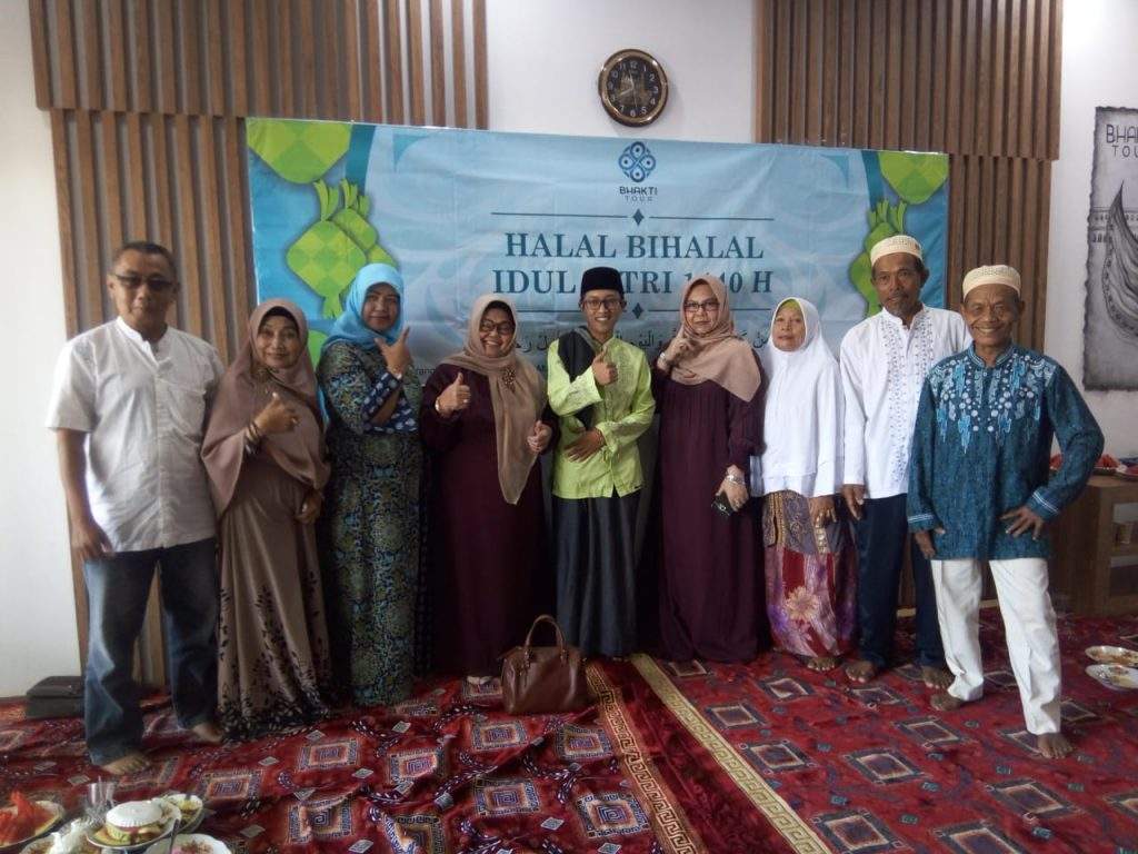 Dalam sambutannya, Ustad Solahudin mewakili manajemen BHAKTI TOUR menyampaikan maaf lahir bathin kepada semua undangan yang hadir. “Minal aizin walfaizin, kami mewakili manajemen dan direksi BHAKTI TOUR menyampaikan mohon maaf lahir dan bhatin. Maafkan kami bapak bapak dan ibu-ibu,” ujarnya.