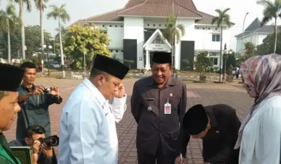 Pembacaan sumpah langsung di Pimpin oleh Bupati Karawang Cellica Nurachadiana di halaman plaza Pemkab Karawang.