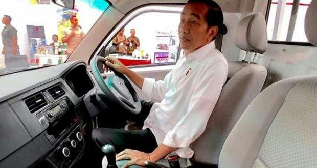 JATENG – Presiden RI Joko Widodo bersama Menteri Perindustrian Airlangga Hartarto menjajal mobil pikap Esemka Bima 1.200 cc putih saat peresmian pabrik PT Solo Manufaktur Kreasi (Esemka) di Boyolali, Jawa Tengah, Jumat (6/9/2019).
