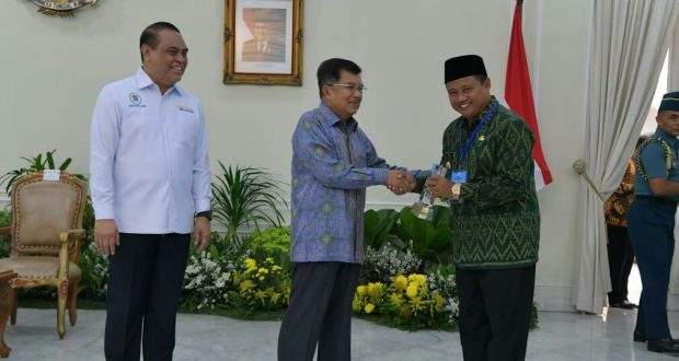 Plh. Gubernur Jabar Uu Ruzhanul Ulum menerima piagam penghargaan yang diberikan oleh Wakil Presiden RI Jusuf Kalla di Istana Wapres RI, Jl. Medan Merdeka Selatan, Jakarta, Selasa (15/10/19).