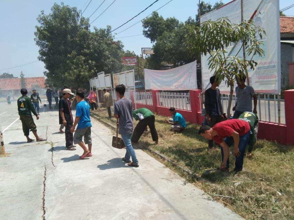 Mereka tampak kompak, bergotong royong membersihkan halaman sekitar kantor kuwu Desa Dompyong Wetan, juga bersih – bersih mesjid dan memberikan cinderamata kepada marbot mesjid.
