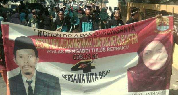 Calon Kuwu no urut 4, Desa Dompyong Wetan, Tarsono mengatakan, bahwa acara kampanye damai keliling desa berjalan lancar. “Alhamdulillah, dengan pelaksanaan kampanye berbarengan dengan hari santri ini, saya meminta doa restu kepada keluarga, saudara, sahabat, dan semua warga Dompyong Wetan agar bisa memenangkan pencalonan kuwu tahun ini,” pungkas calon kuwu yang akrab dipanggil Kang Ono ini. (adi)