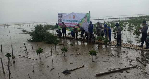 CIREBON – Peringati Hari Pohon Sedunia, Polresta Cirebon gelar apel penanaman 10.000 pohon, di sekitar pinggir Pantai Baro Gebang, Desa Gebang Mekar Kec. Gebang Kab. Cirebon, Jumat (10/1/2020).