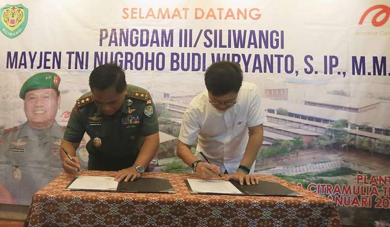SERANG – Dalam menjalani kerjasama, Pangdam III/Siliwangi Mayjen TNI Nugroho Budi Wiryanto, S.I.P., M.M. Q.I.A., menandatangani nota kesepahaman (MoU) dengan PT. Arwana Citramulia yang berlangsung di Kampung Maja Desa Kibin Kecamatan Kibin Kabupaten Serang, Kamis (16/1/2020).