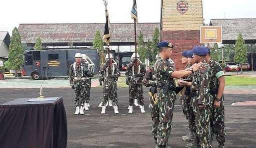 Saat upacara itupun dilakukan simbolis penyerahan tanda pangkat, tongkat komando, dan panji-panji Batalyon A serta C Pelopor dari pejabat lama kepada pejabat baru.